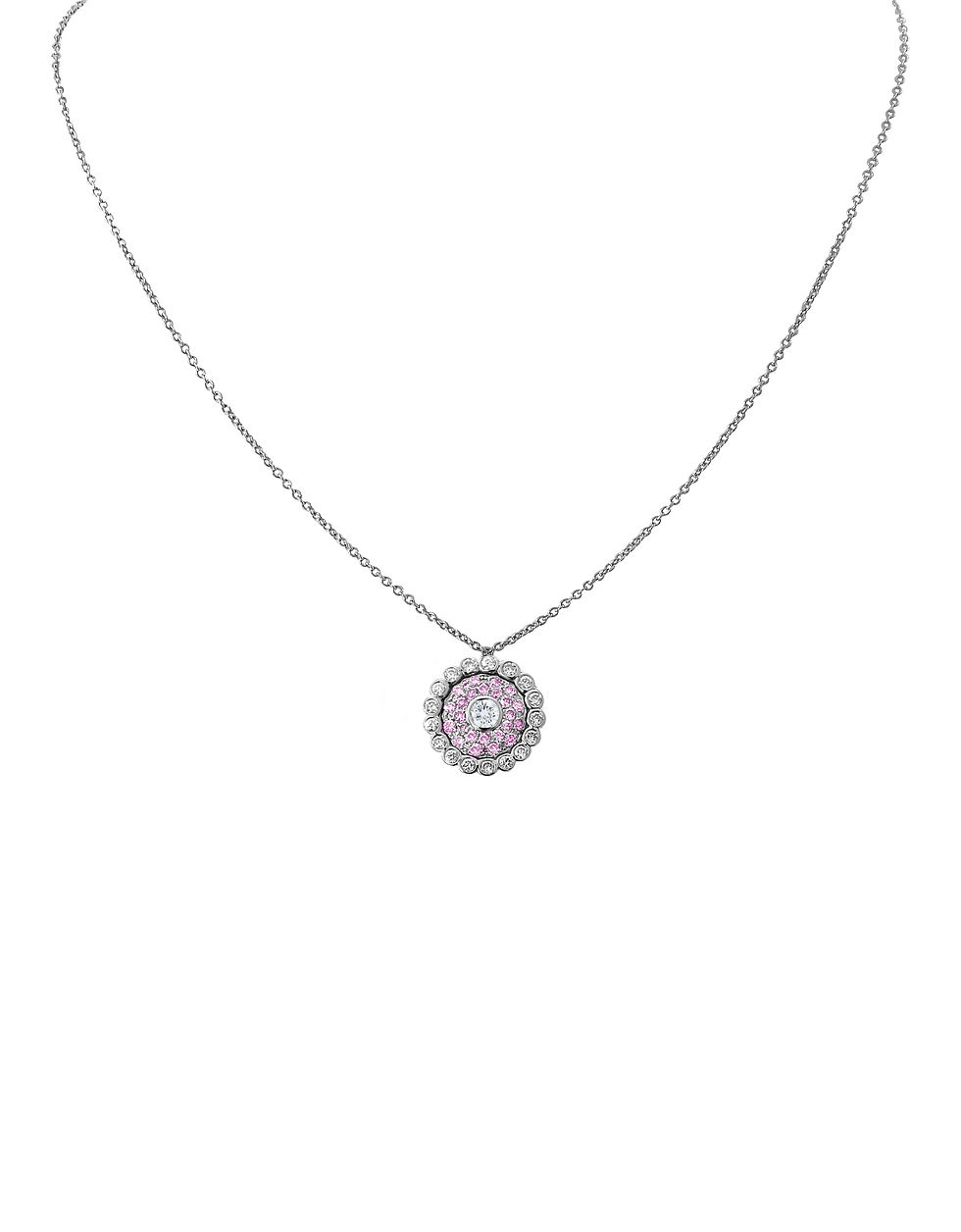 Evil Eye Light Pink Sapphire Diamond White Gold Necklace